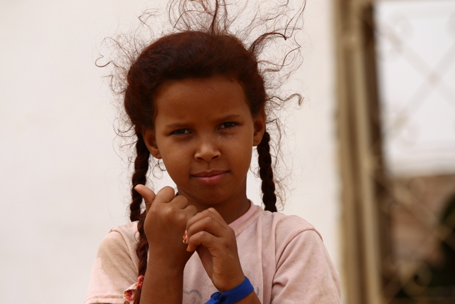 La petite fille est devenue toute raide et a fait un grand sourire. Elle est arrivée en courant vers nous et a dit quelques mots à sa maman. Je n'ai pas compris parce qu'elles ont parlé en Mauritanien.